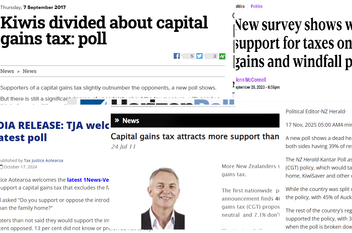 Every so often someone stumbles across a poll showing a capital gains tax has more supporters than opponents and declares the political tide is turning.