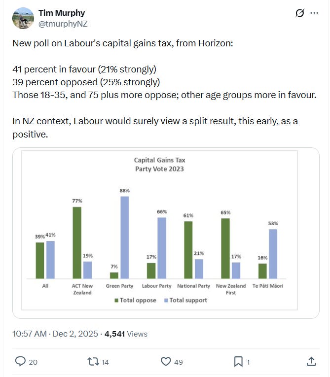 Let’s start with the simplest point: the most stalwart CGT supporters are the people Labour and its allies already have: younger renters, left-leaning professionals and media people. They treat taxing capital gains as a moral imperative and they also tend not to be the voters who switch between National, Labour and NZ First.